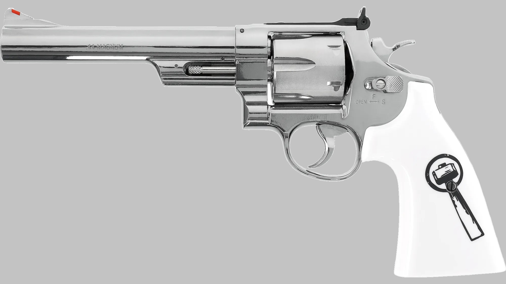 Ova posebna “Trust Me” verzija legendarnog revolvera Smith & Wesson 629 uočljiva je po svojoj elegantnoj niklovanoj obradi i rukohvatima boje slonovače.