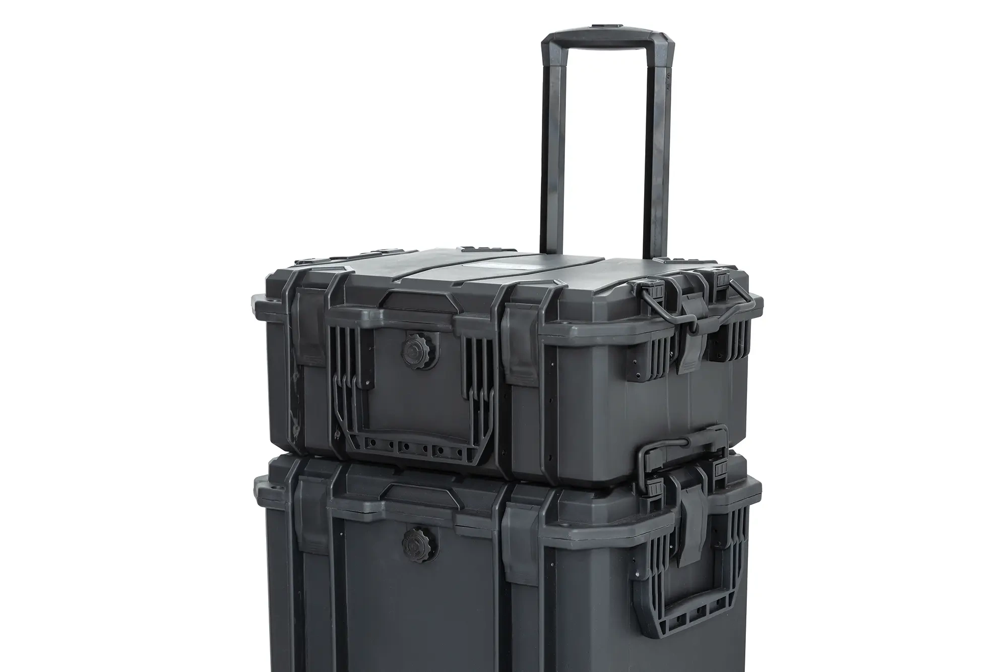 Na vrhu poklopca i sa strane nalaze se dodatne ručke koje olakšavaju pomicanje ili nošenje kovčega. Manji kovčeg, kapaciteta približno 18 litara, opremljen je ručkama sa strane i čeličnim nastavkom koji omogućuje spajanje dva kovčega tijekom transporta pomoću teleskopske ručke. Oba artikla imaju čvrste brave, rupe za lokote (lokoti se moraju kupiti zasebno) i ventile za regulaciju tlaka. Unutra ćete pronaći gumene brtve koje će zaštititi od prašine ili vlage (IP67).
